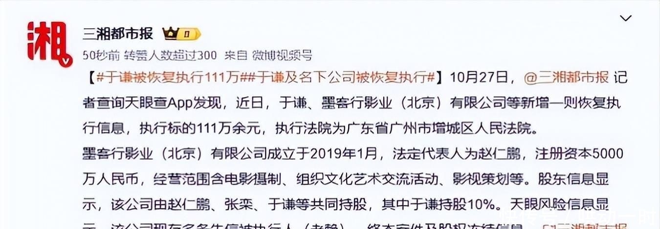 问题根源在于墨客行影业有限公司。该公司成立于2019年,由于谦与几位友人联合创办,他在其中持股10%。